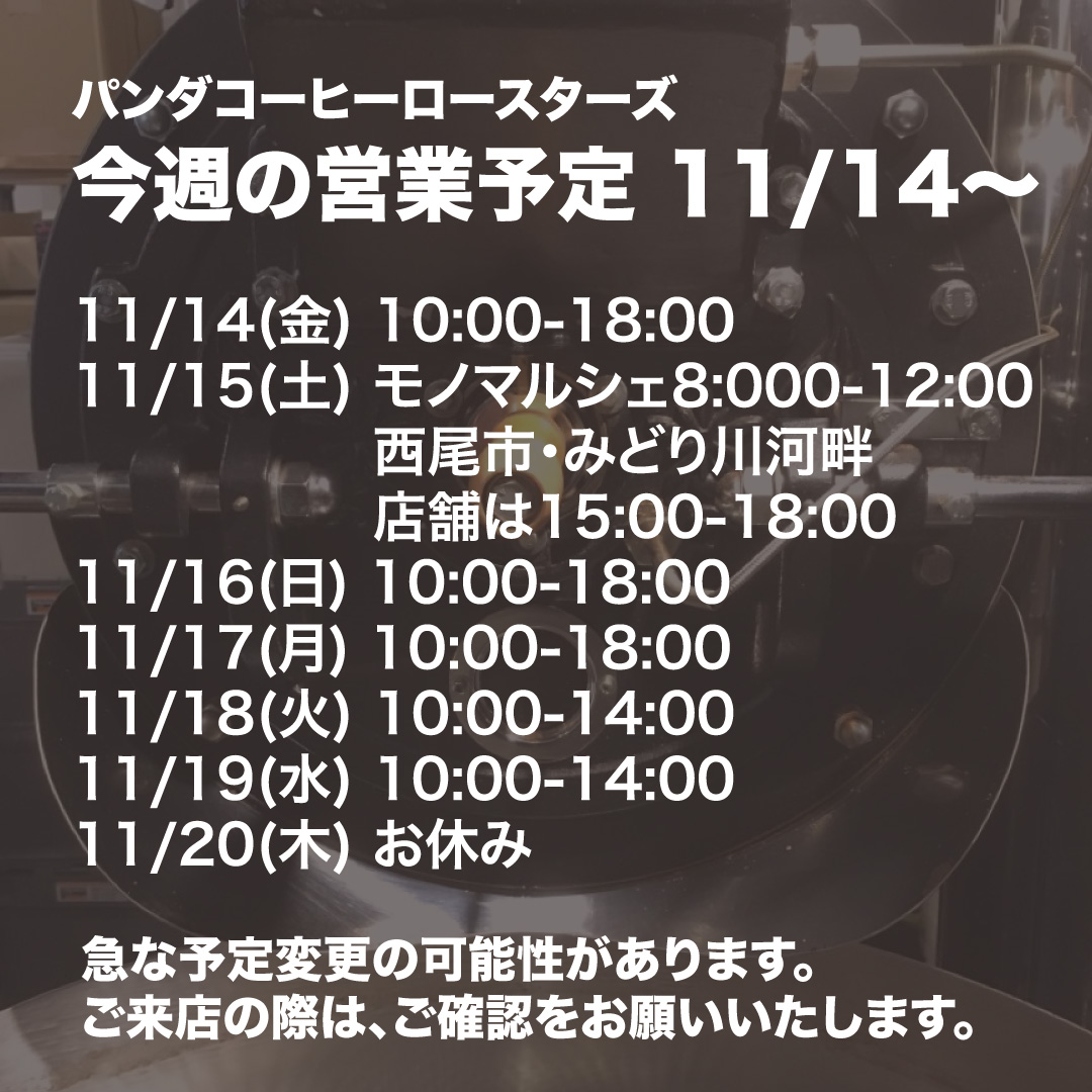 * 緊急に予定を変更する場合があります。ご来店の際は、お知らせhttps://pandacoffee.com/info/)をご確認の上、ご来店をお願いいたします。