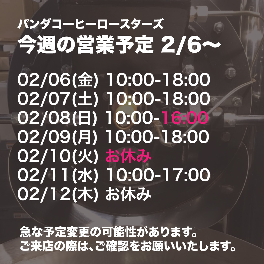 * 緊急に予定を変更する場合があります。ご来店の際は、お知らせ(https://pandacoffee.com/info/)をご確認の上、ご来店をお願いいたします。