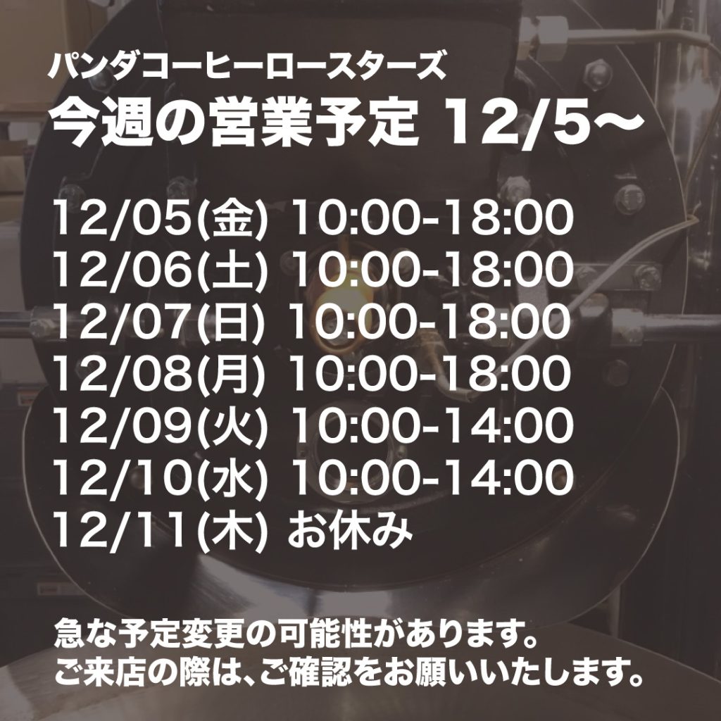 * 緊急に予定を変更する場合があります。ご来店の際は、お知らせhttps://pandacoffee.com/info/)をご確認の上、ご来店をお願いいたします。