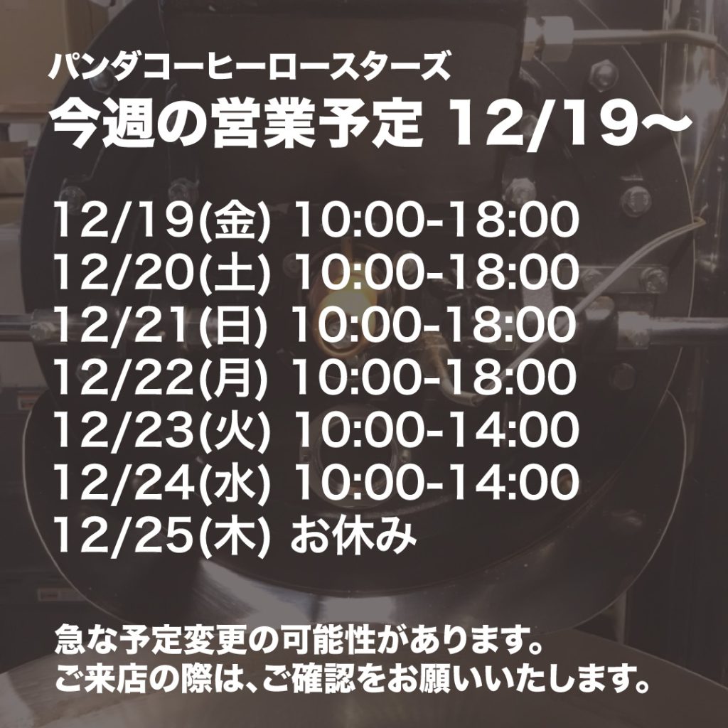 * 緊急に予定を変更する場合があります。ご来店の際は、お知らせhttps://pandacoffee.com/info/)をご確認の上、ご来店をお願いいたします。