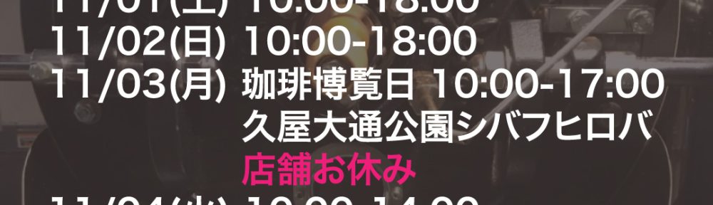 今週の営業予定は、以下の通りです。11/3は、珈琲博覧日(@onedaycoffeeexpo)に出店いたします。