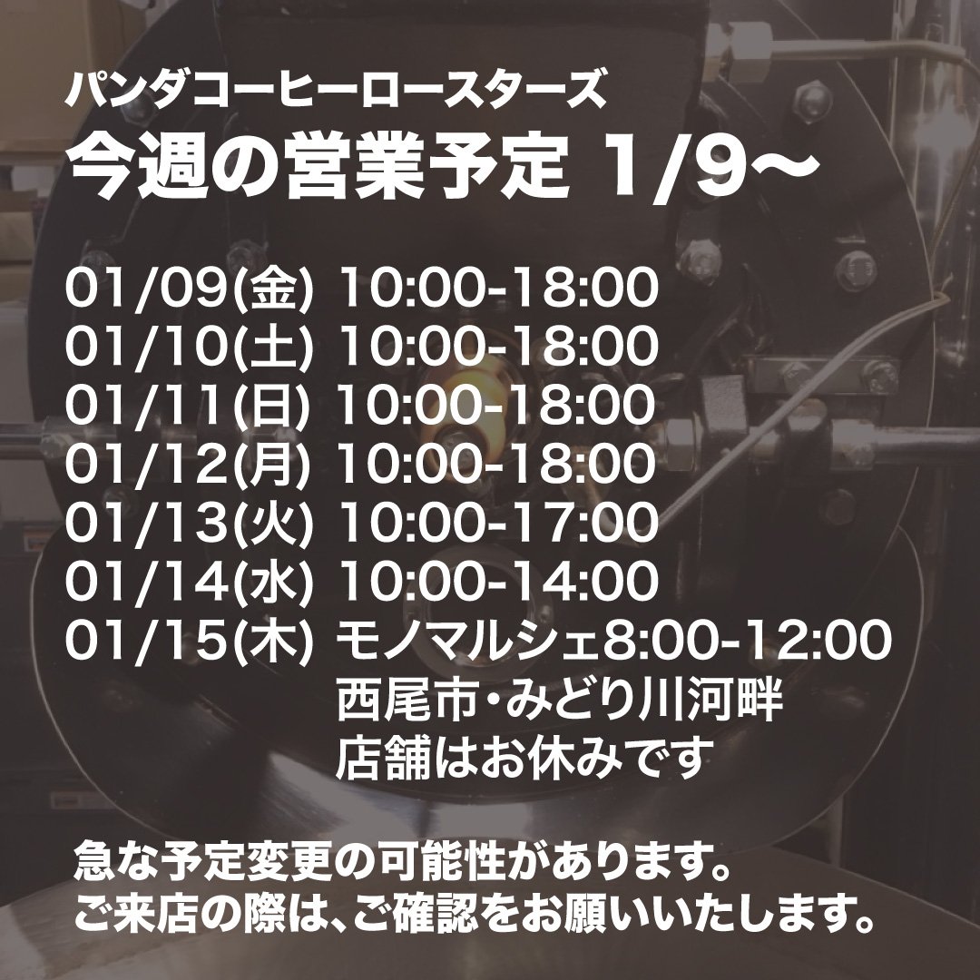 * 緊急に予定を変更する場合があります。ご来店の際は、お知らせhttps://pandacoffee.com/info/)をご確認の上、ご来店をお願いいたします。