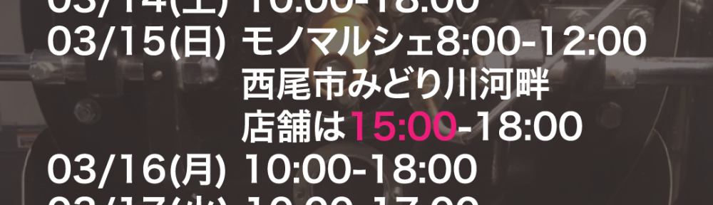 03/15(日) 店舗は15:00-18:00